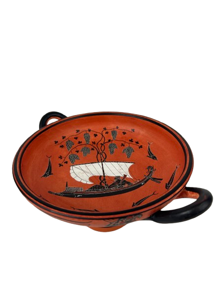 Athenian black-figure cup Kylix. Coral red sub-technique. Museum's Replica at scale 1:2