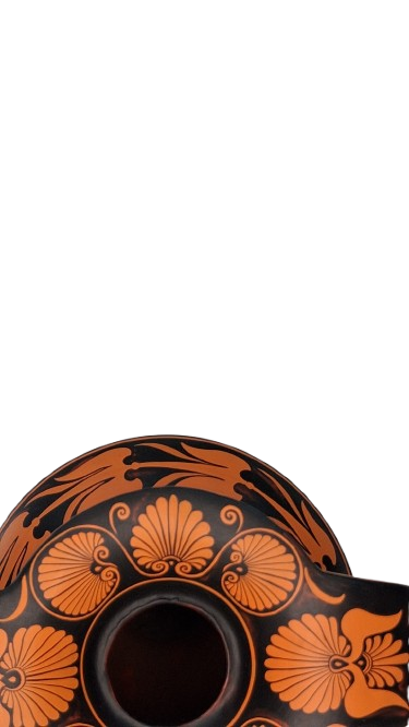 The handles are adorned with crowned youths, perhaps athletes or celebrants, holding wreaths and branches, emblems of honour and festivity. The entire composition exudes the ritual drama and sensuality of Dionysian iconography, rendered with refined movement and narrative detail.