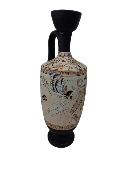 The subject is extremely rare, possibly unique: no other surviving vase shows Atalanta pursued or flanked by so many Erotes. This may symbolize an erotic or allegorical pursuit, combining myth with ritualized love imagery.